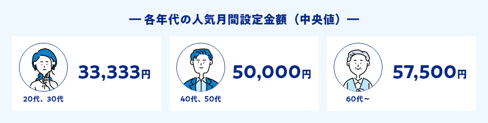 そこで、年代別の設定金額をご紹介!設定が多い金額はどの年代でも3~5万円前後でした。