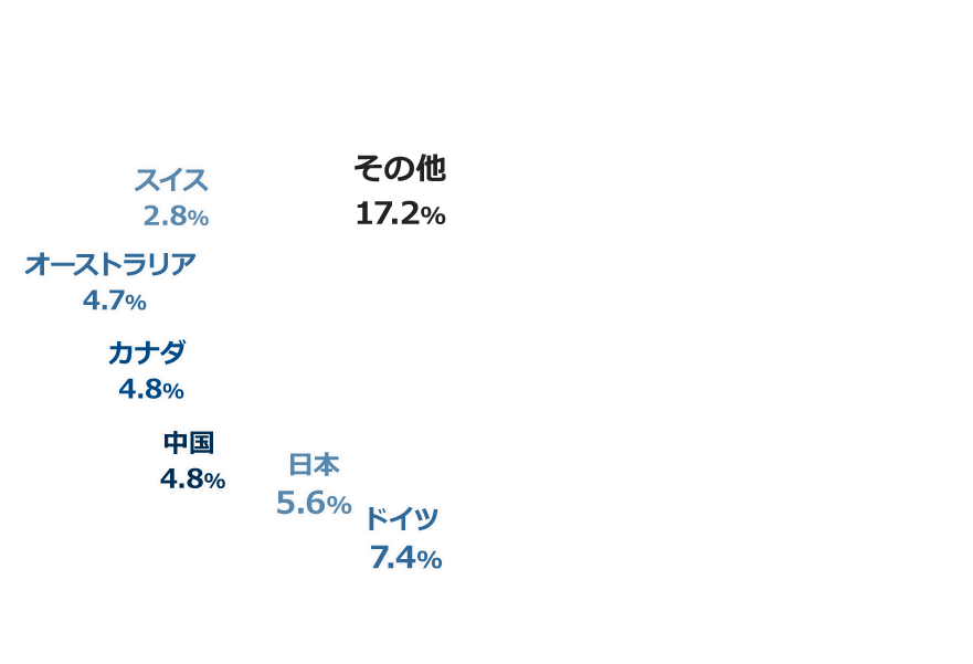 - マザーファンドの組入比率です。国・地域別組入比率は、派生商品による投資も含みます。セクター別組入比率は、マザーファンドのうちキャッシュ等を除いています。派生商品による投資も含みます。