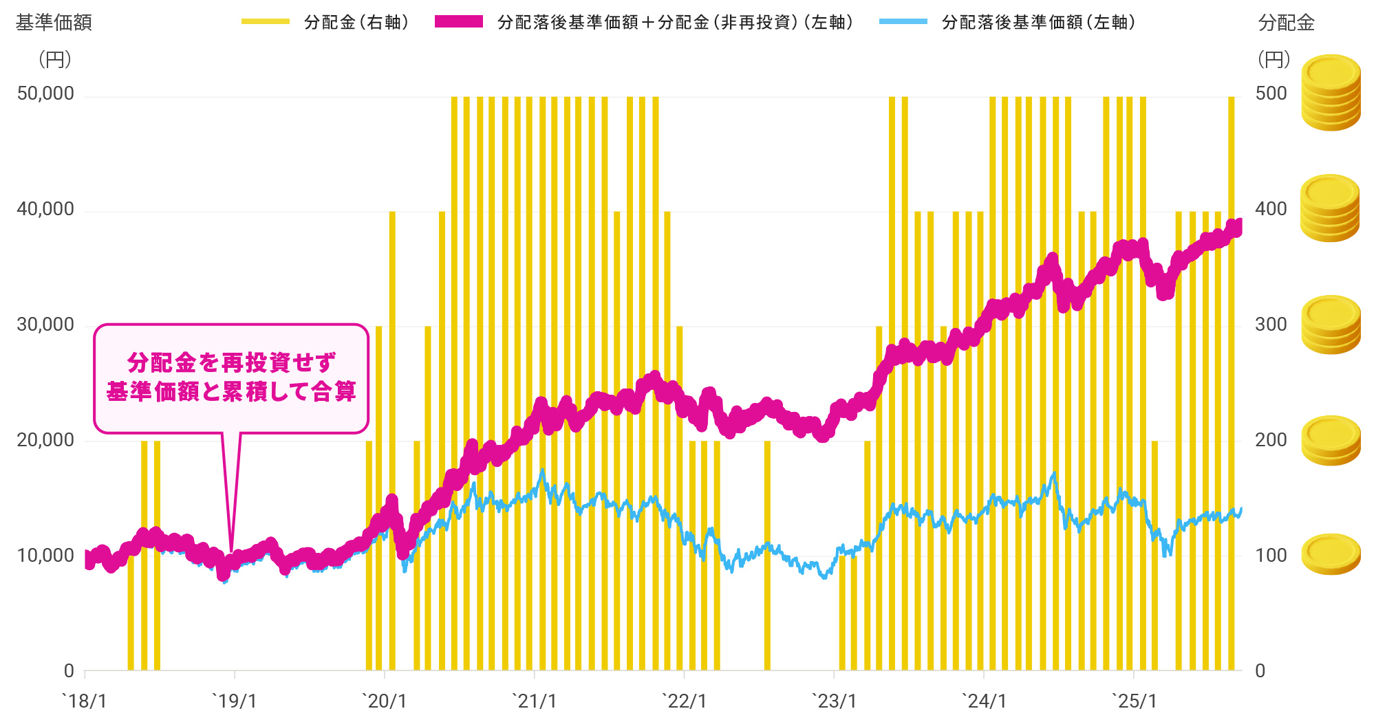 - 投資信託は、主に国内外の株式や債券等を投資対象としています。投資信託の基準価額は、組み入れた株式や債券等の値動き、為替相場の変動等により上下しますので、これにより投資元本を割り込むおそれがあります。