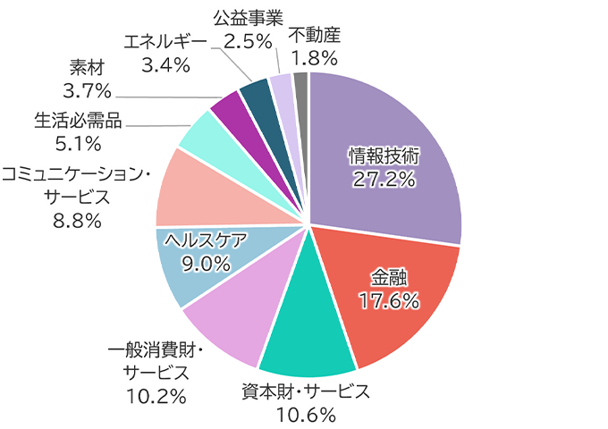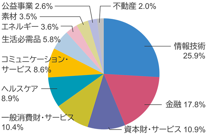 業種名は世界産業分類基準(GICS)のセクター分類に基づきます。四捨五入しているため、合計が100%とならない場合があります。信頼できると判断した情報をもとにアモーヴァ・アセットマネジメントが作成。上記は過去のものであり、将来の運用成果等を約束するものではありません。