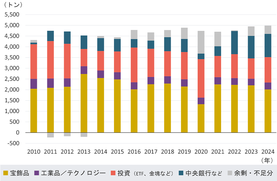 金の需要の推移 期間:2010年~2024年