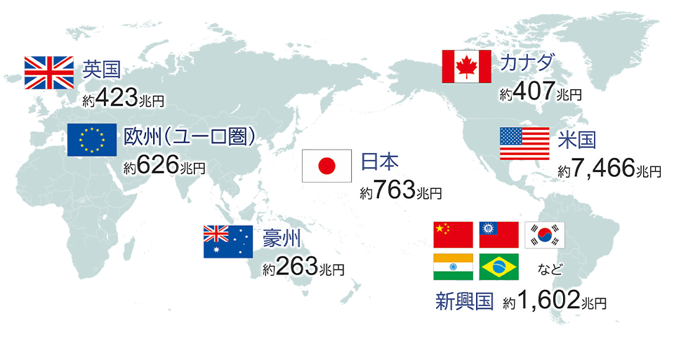 MSCIオール・カントリー・ワールド・インデックスとは、MSCI Inc.が開発した株価指数で、先進国(含む日本)23ヵ国および新興国24ヵ国の株式市場に上場する大型および中型株 で構成されています(2025年12月末時点)。