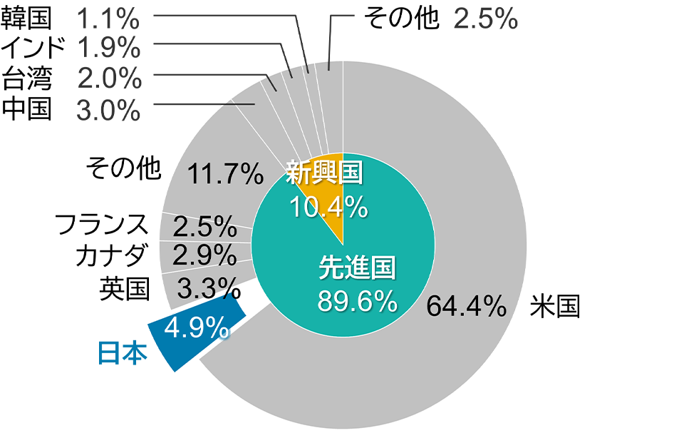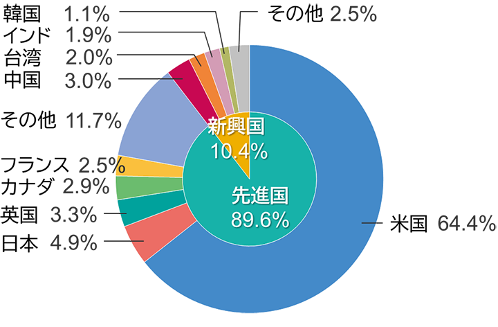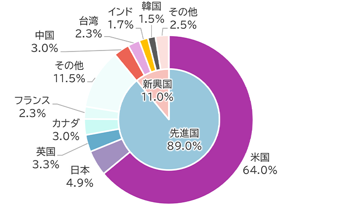 四捨五入しているため、合計が100%とならない場合があります。信頼できると判断した情報をもとにアモーヴァ・アセットマネジメントが作成。上記は過去のものであり、将来の運用成果等を約束するものではありません。