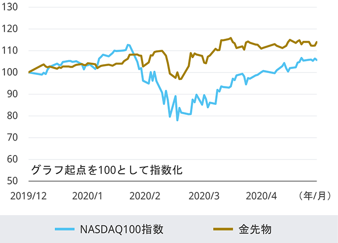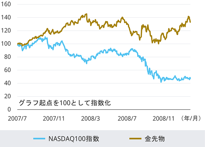 「有事の金」とも言われることのある金ですが、株式と組み合わせることにより、単独で持つ場合に比べた投資効率の向上 が期待できます。