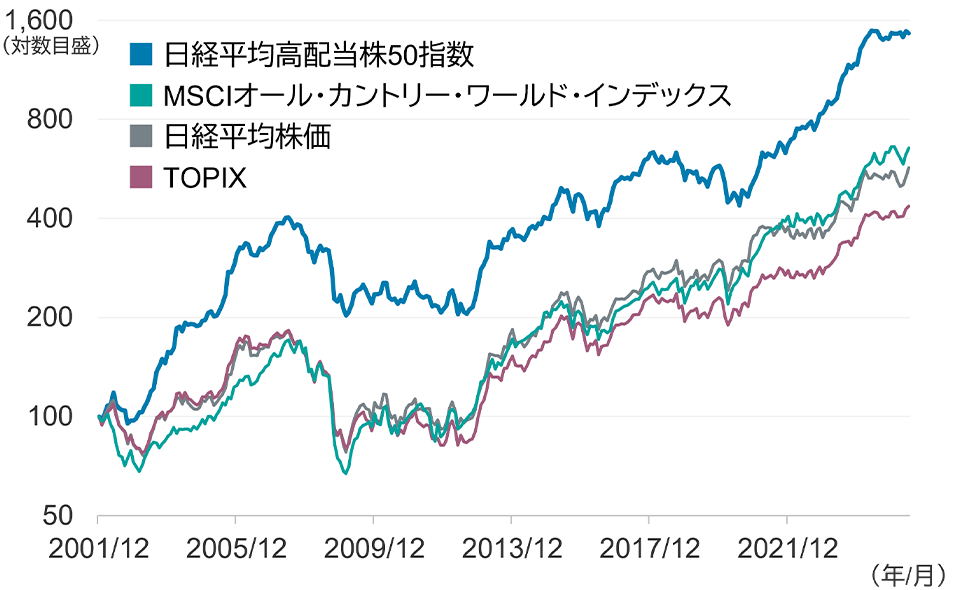 主要な株価指数の中でもMSCIオール・カントリー・ワールド・インデックスは、長期的には資産を育てる攻めの役割 を担ってくれると期待できます。