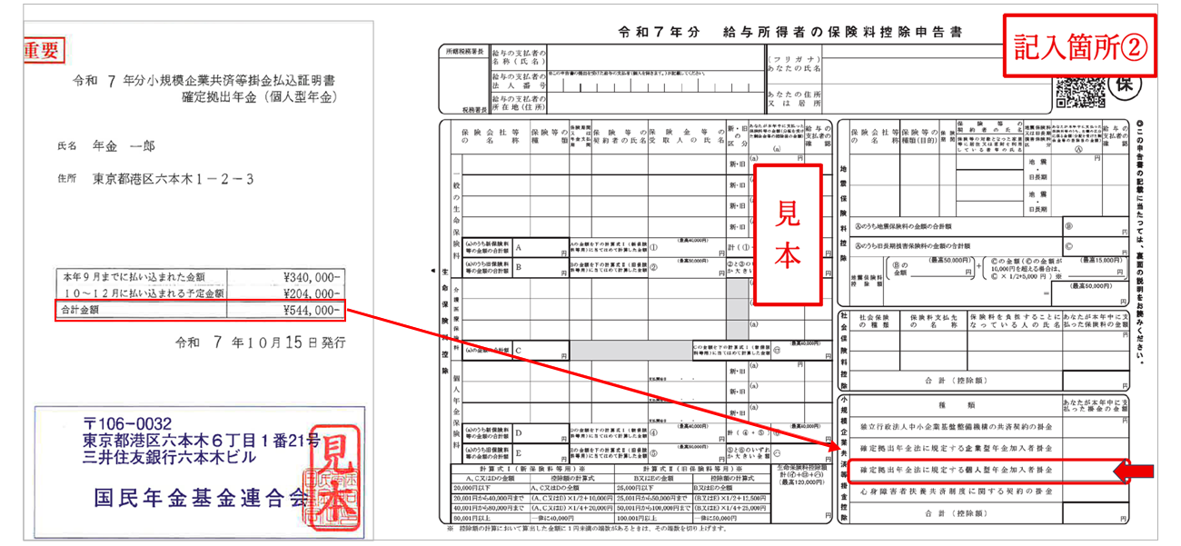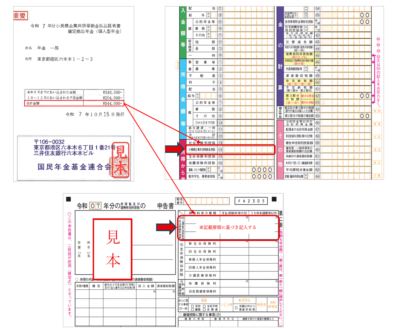 国民年金基金連合会より、10月下旬頃に「小規模企業共済等掛金払込証明書」が葉書で郵送されます。以下の方法で申請してください。